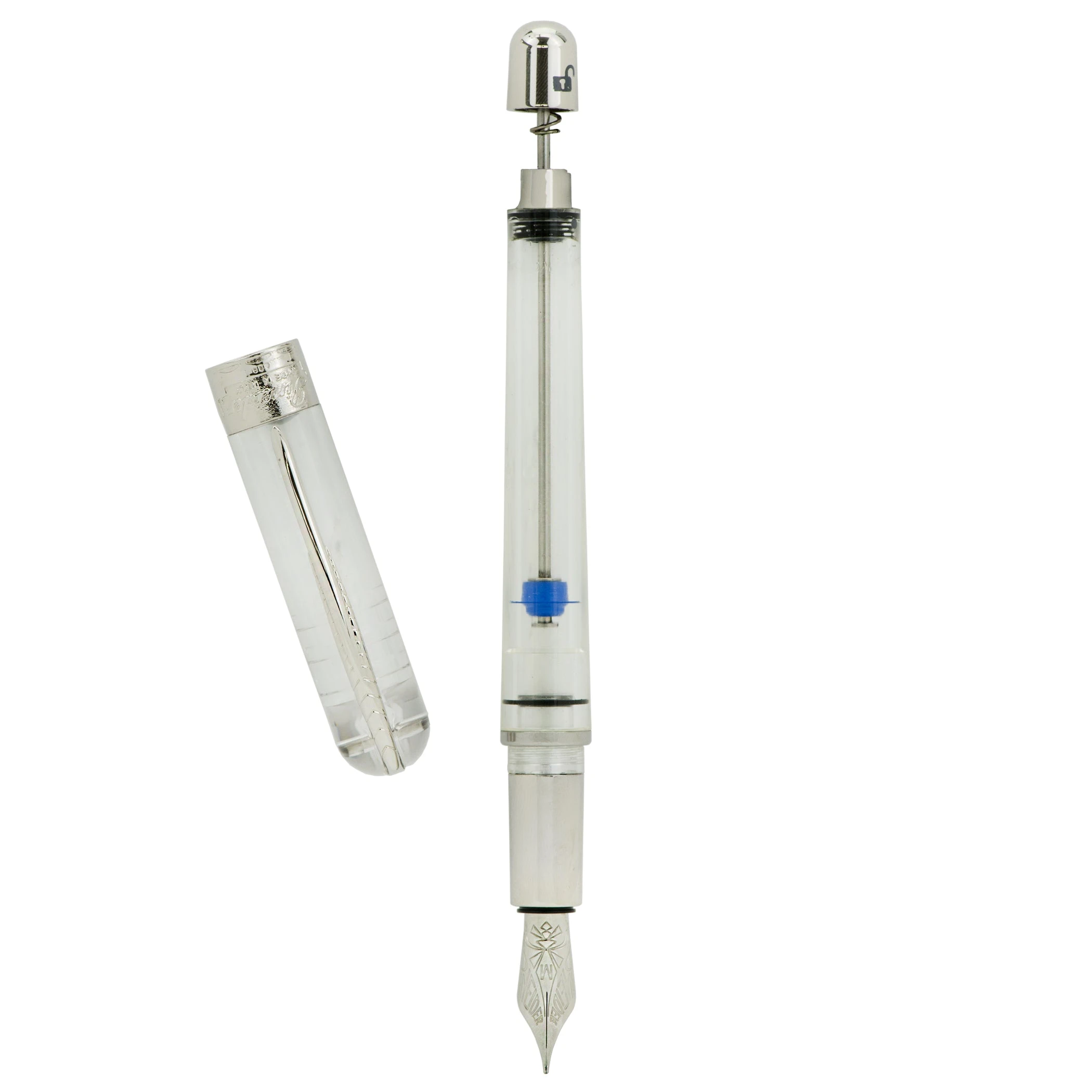 Avatar Traveler allows not only a great autonomy of writing, and, in complete safety, air travel without worries, definitively solving the problem of using the fountain pen while traveling, freeing everyone from the obligation to carry it in an upright position. More simply you can put the pen in your briefcase, in any way without worrying about any accidental loss Avatar Traveler uses a filling system, Twin Tank Touchdown, which allows two writing positions, short writing and long writing, which are activated thanks to an ingenious mechanism inside the caseback. In other words, the pen has two twin tanks, a large one that serves as a reserve and a small one that is always connected to the nib.