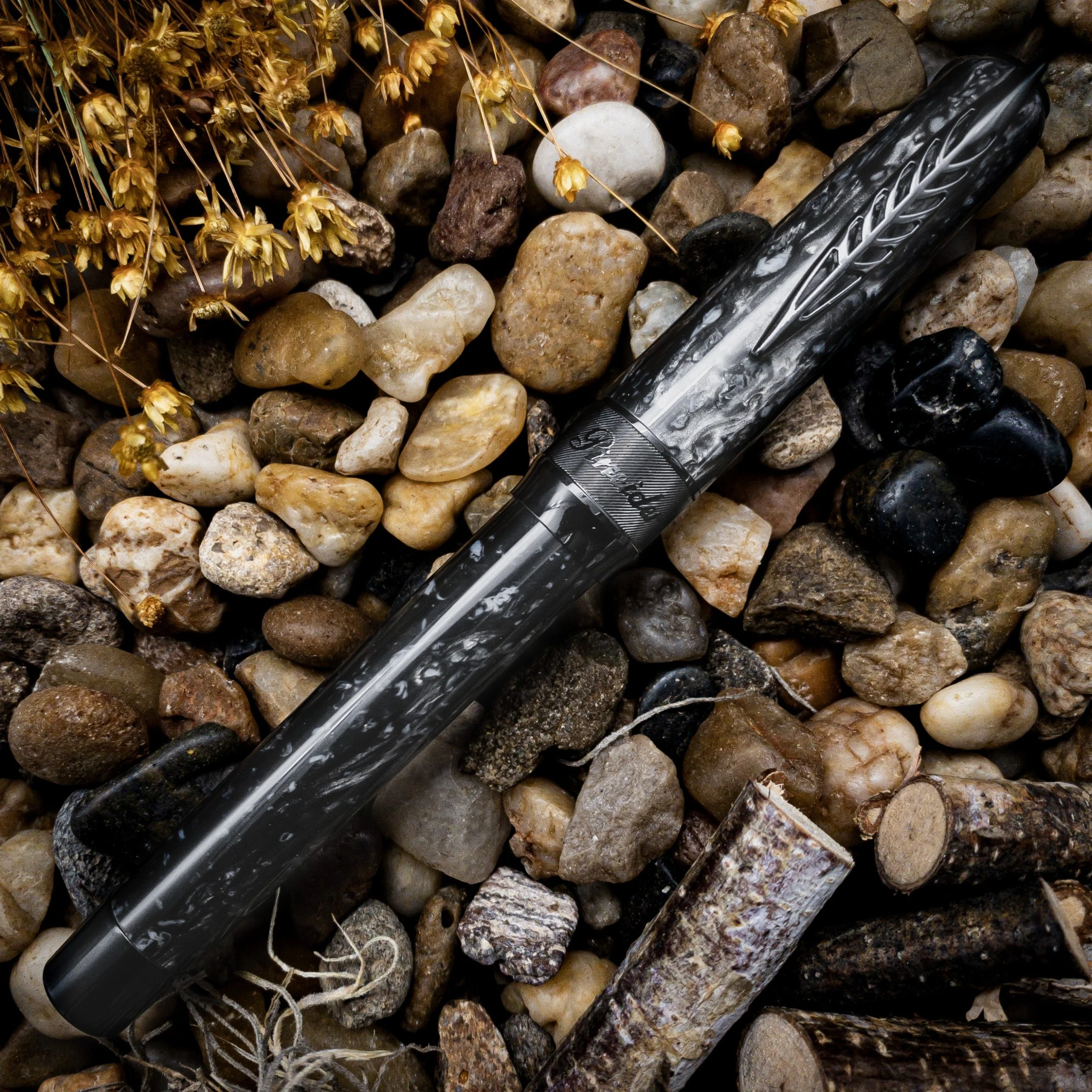 A quill-shaped clip adorns the cap, which is secured by Pineiders soft touch magnetic lock system.